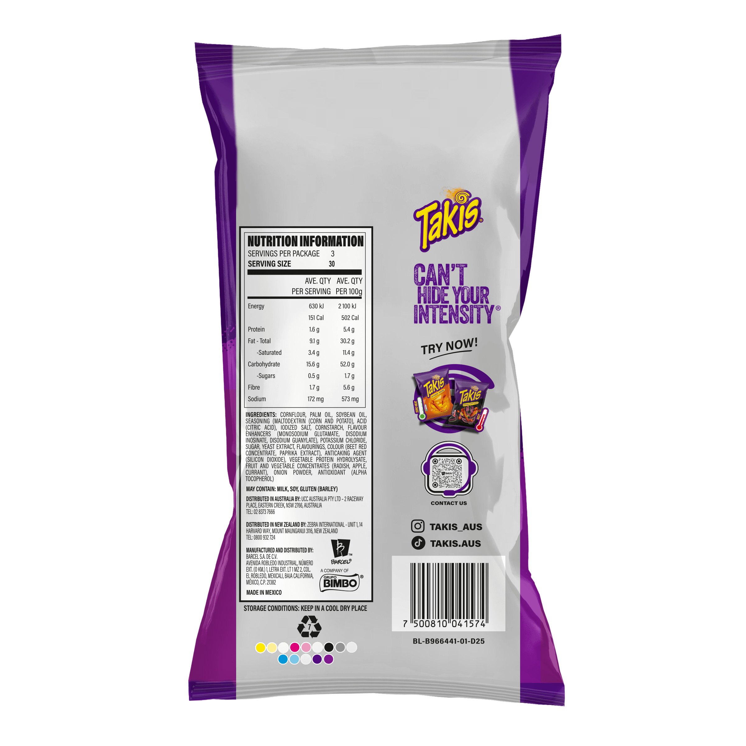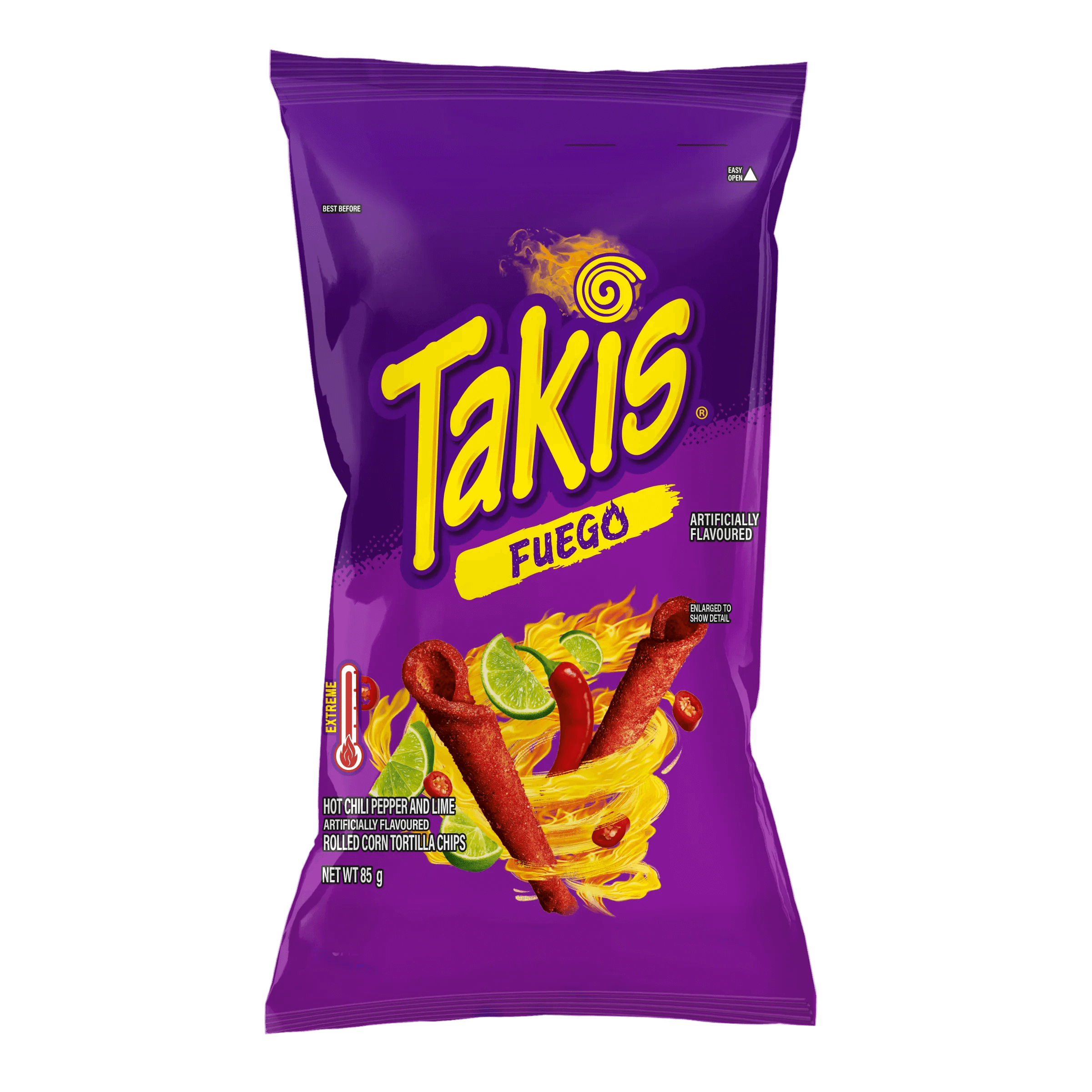 Barcel Takis Fuego 85g is the iconic rolled tortilla chip snack with a bold chilli + lime punch and that signature Takis crunch. Intensely tangy, seriously spicy, and ridiculously moreish — this is the go-to for heat lovers across New Zealand.